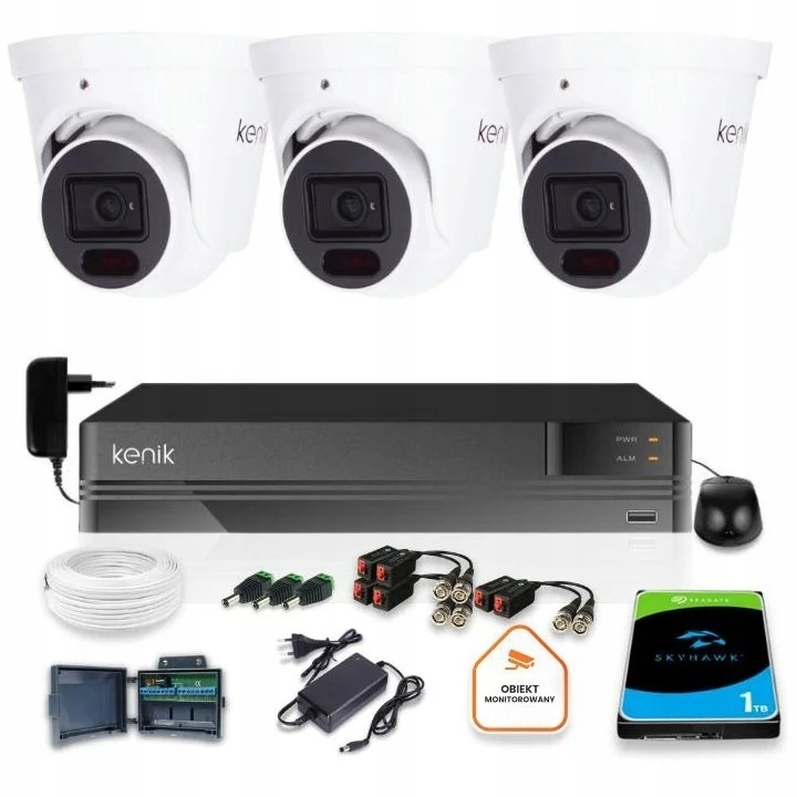 Zestaw oparty o sprzęt marki Kenik, oferujący obraz w jakości 5MPx. Kamery przeznaczona do zastosowań zewnętrznych jak i wewnętrznych np. monitoring domu, sklepu. Gwarantowany zapis nagrań aż 8 dni. Dzięki diodom IR, kamera w całkowitej ciemności nadzoruje obszar do 30m. Zestaw z możliwością rozbudowy o 1 kamerę HD i 2 kamery IP.