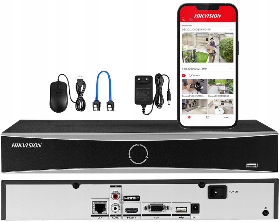 | Cechy dodatkowe | Aplikacja HikConnect / HiLook App, Obsługa przez PC i smartfony, Rejestrator ze switch'em PoE |