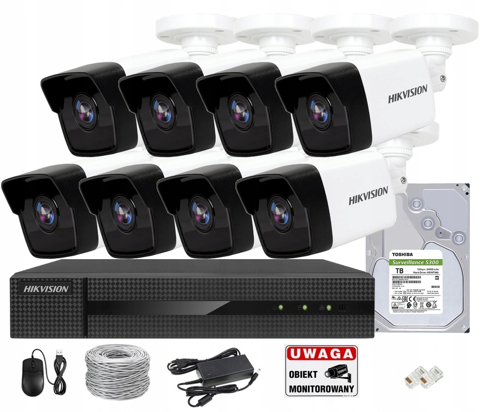 | Cechy dodatkowe | Obsługa przez PC i smartfony, Rejestrator HWN-4108MH-8P, Zestaw monitoringu HikVision z kamerami tubowymi |