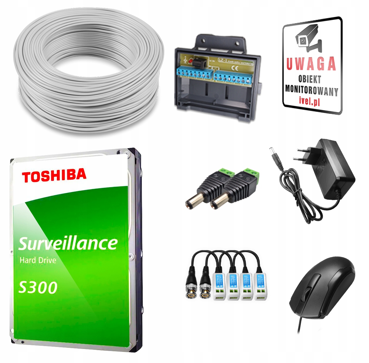 | Załączone wyposażenie | DYSK S300 Toshiba 1TB, Kamera HWT-B120-M, Przewód CCA 50m, Rejestrator HWD-5104M, Transformator wideo, Wtyk zasilania DC, Zasilacz DS-2FA1225-C4(EUR) |