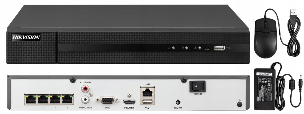 - 1x rejestrator sieciowy NVR z PoE – HWN-4104MH-4P