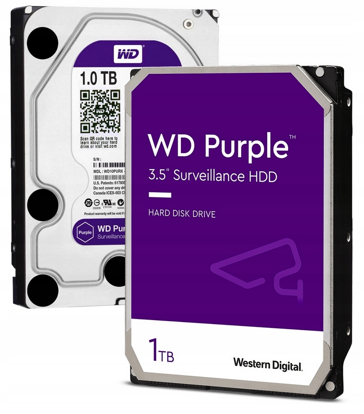 Dysk w zestawie to model z serii Purple, dedykowanej do monitoringu, charakteryzującej się wyższą żywotnością.