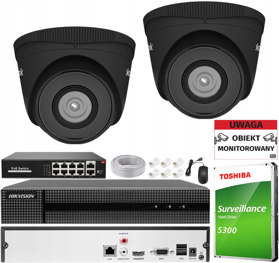 Zestaw do monitoringu Hikvision KIT IPCAM-T5 BLACK-SW8