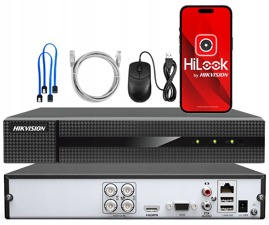 - Rejestrator XVR 4-kanałowy z zasilaczem i myszką – DVR-4CH-5MP HiLook by Hikvision