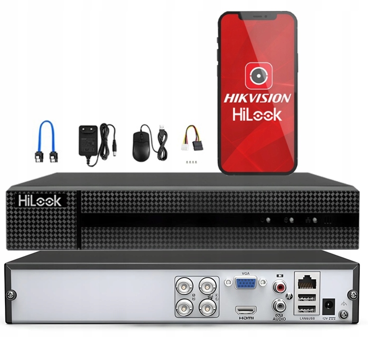 - Rejestrator XVR 4-kanałowy z zasilaczem i myszką – DVR-4CH-4MP HiLook by Hikvision