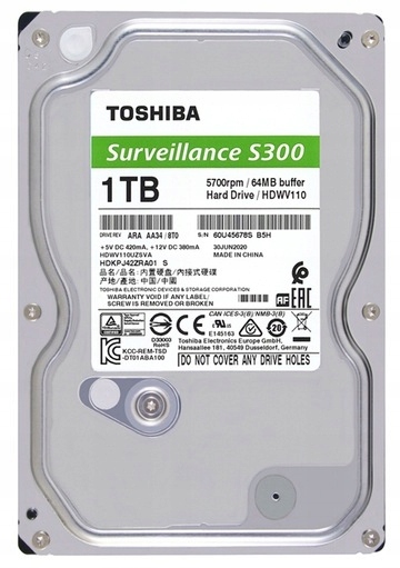 - 1 x Dysk twardy do CCTV (nagrywanie 24/7) – Toshiba S300 1TB