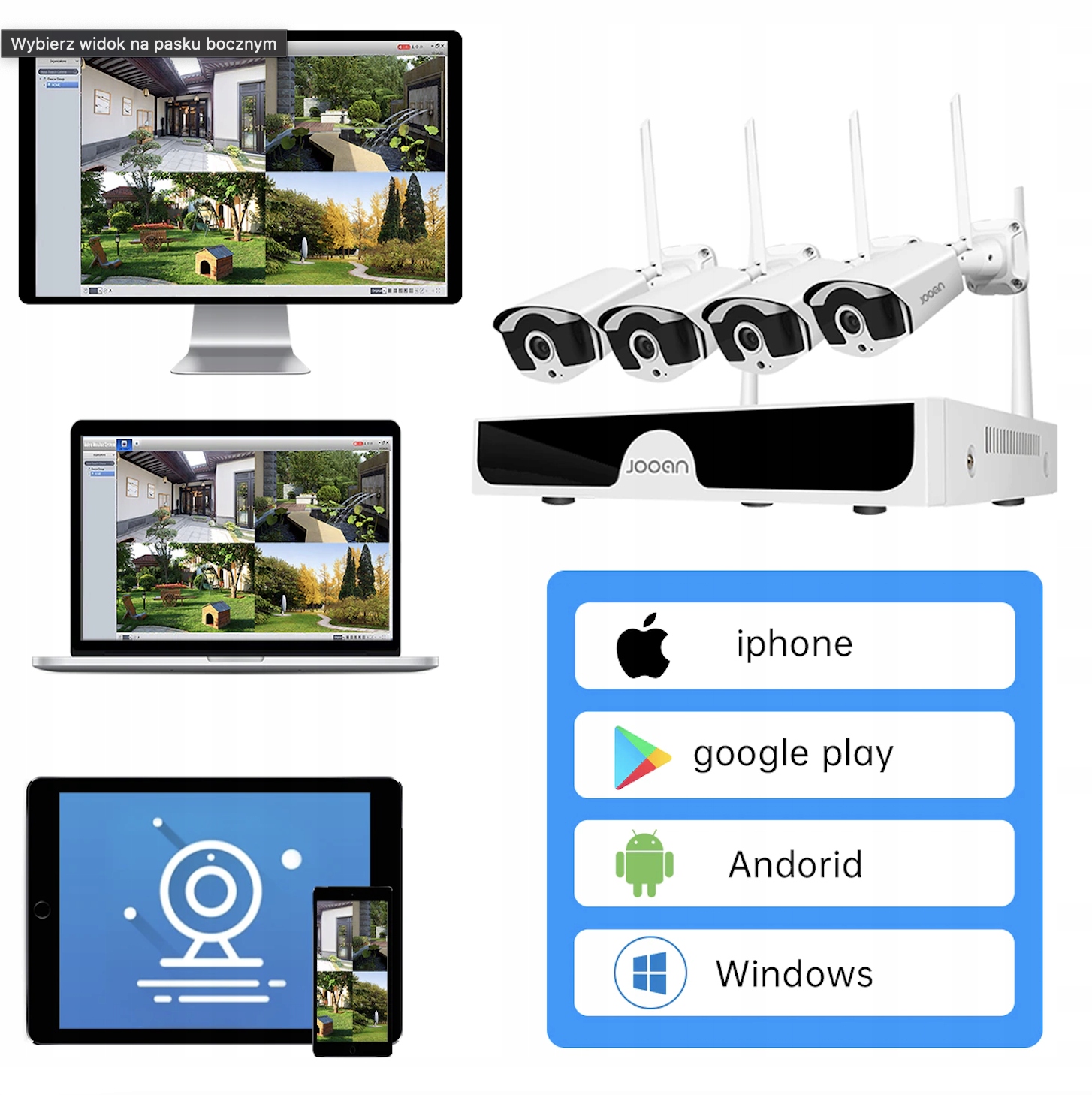♛ BEZPRZEWODOWY SYSTEM KAMER Jooan 10CH NVR 3MP CCTV ♛