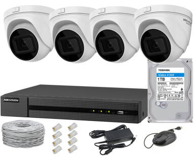 Zestaw do monitoringu IP, 4 kamery 2Mpx IR30, Motozoom, HDD 1TB, 4x PoE – Hikvision Hiwatch