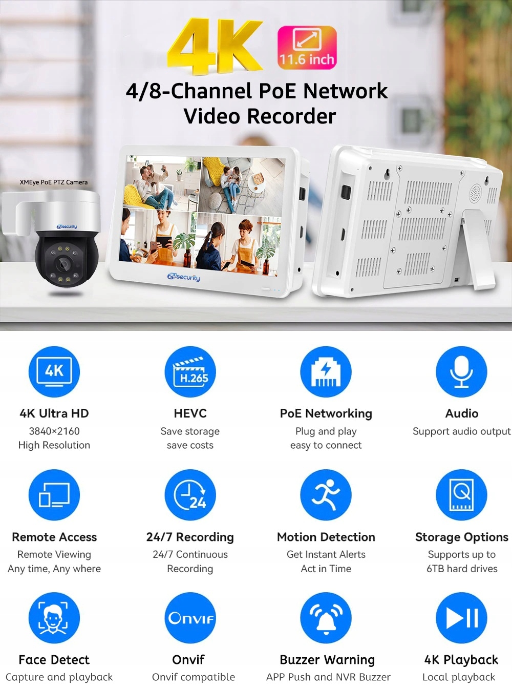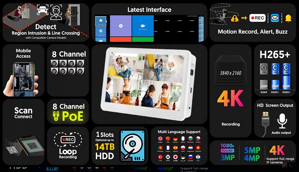 ✅4K 8MP POE NVR z 11.6 " cala- 8kamerowy-możlowość rozbudowy