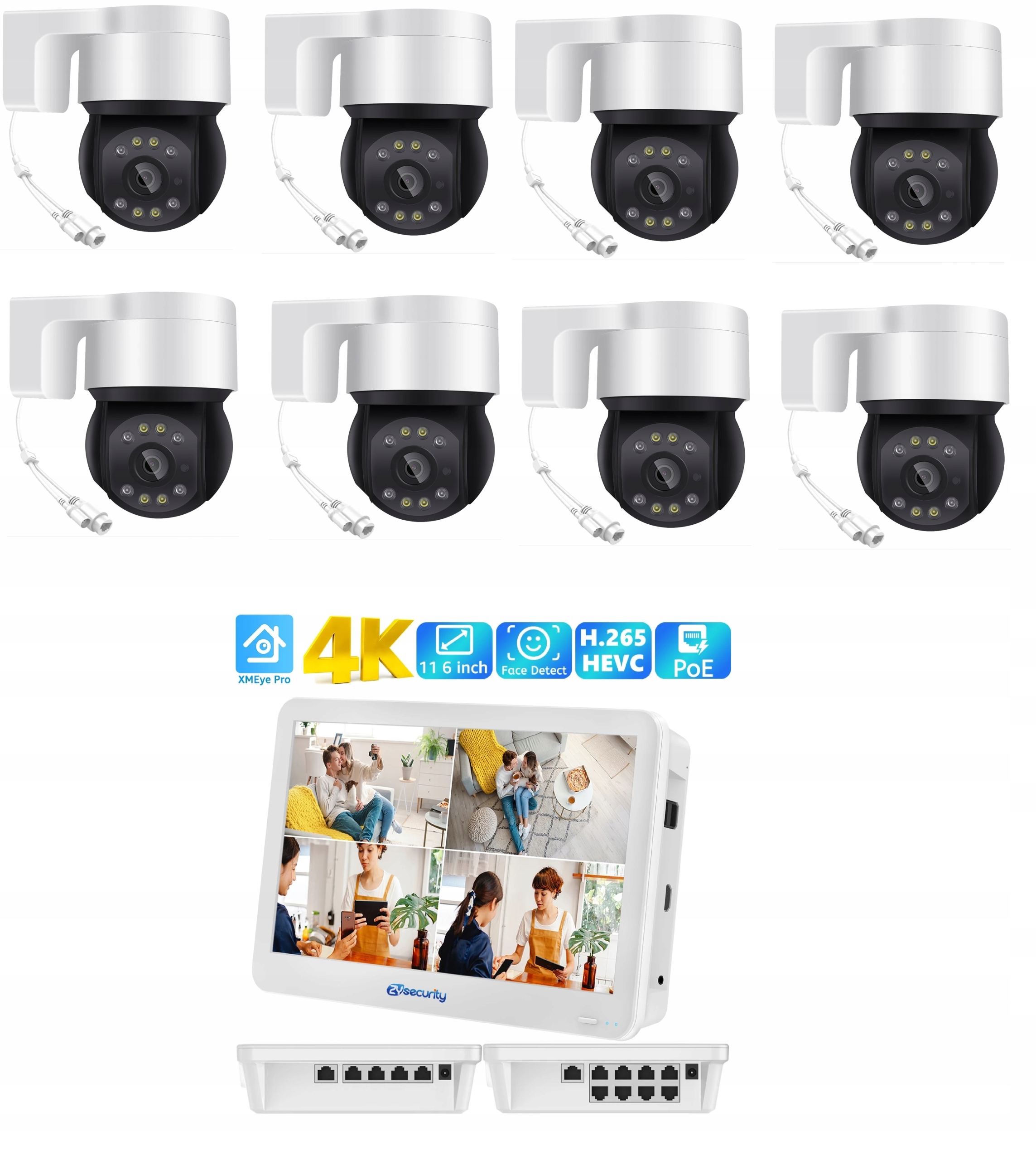 ZESTAW 8 KAMER OBROTOWYCH 5MPX POE Z MONIOREM I NAGRYWARKĄ 4W1