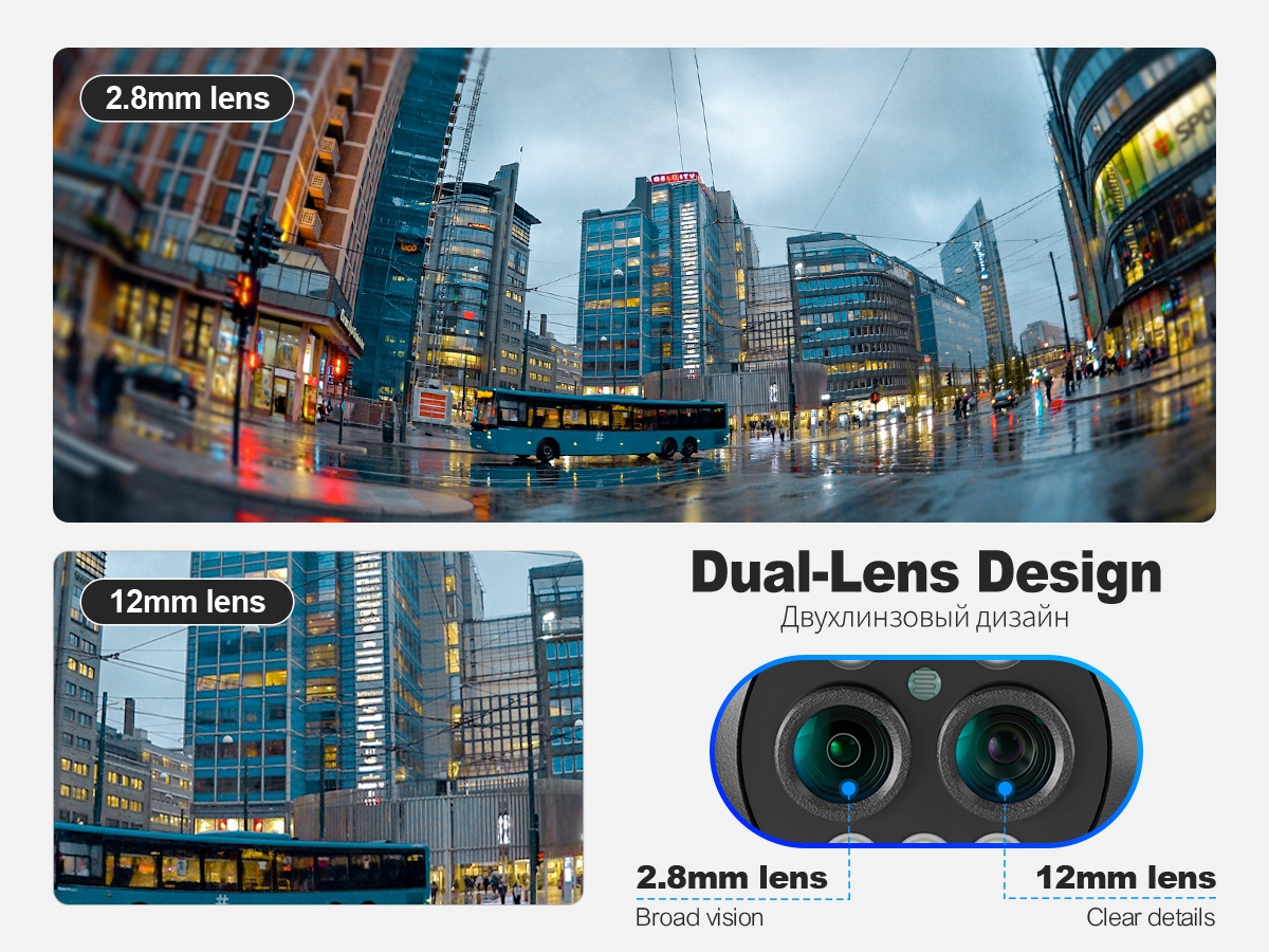 * Kamera z podwójnym obiektywem HD 8MP: 2 szt. Obiektywu 4MP kąt patrzenia kamer z 2 obiektywów to ok 130stopni