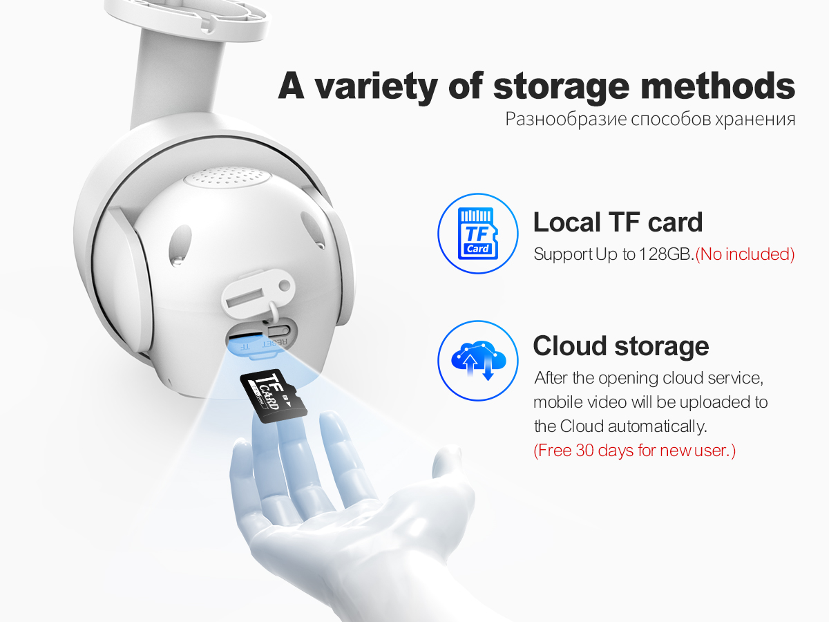 * Kamery obsługują slot na karty do 128GB TF i przechowywanie w chmurze, bezpieczeństwo danych jest bardziej stabilne.