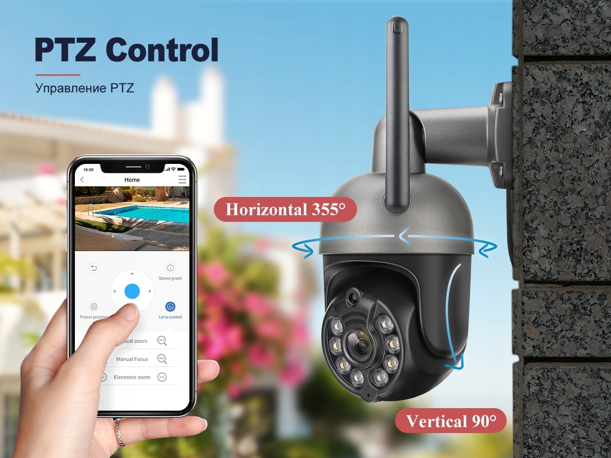 12. Kamera kopułkowa PTZ Speed: sterowanie Pan 355 °/Tilt 90 za pomocą aplikacji Eseecloud / Auto Tracking