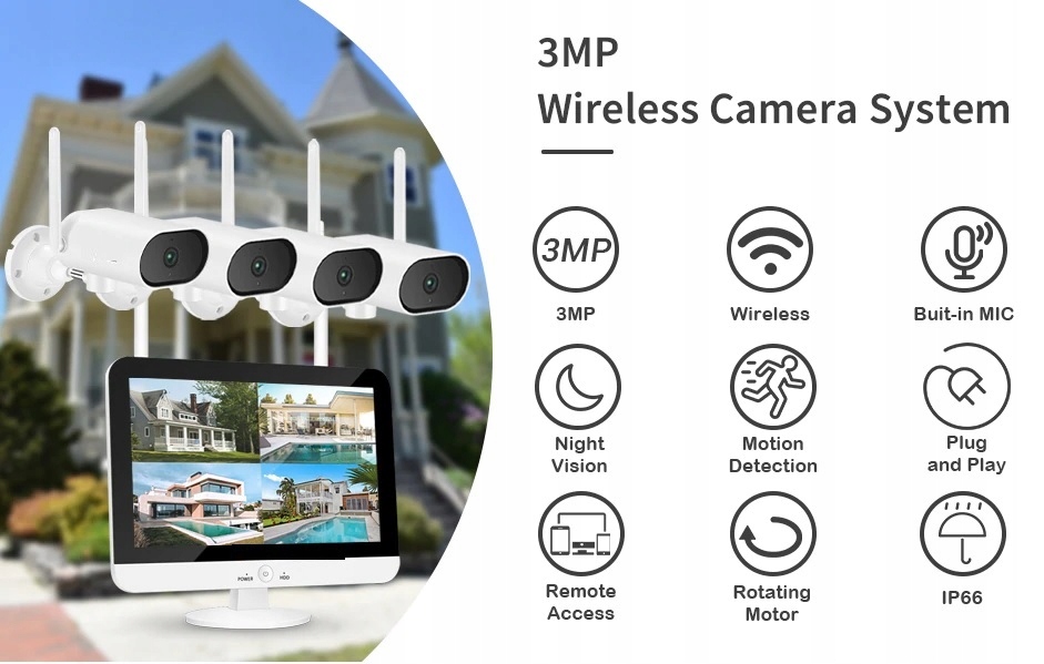 ZESTAW KAMER WIFI Z EKRANEM LCD CAM SET 3MPX AUDIO