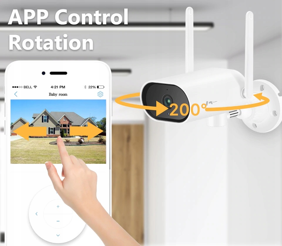 - Kamera ma wbudowany silnik i obsługuje obracanie o 200 °