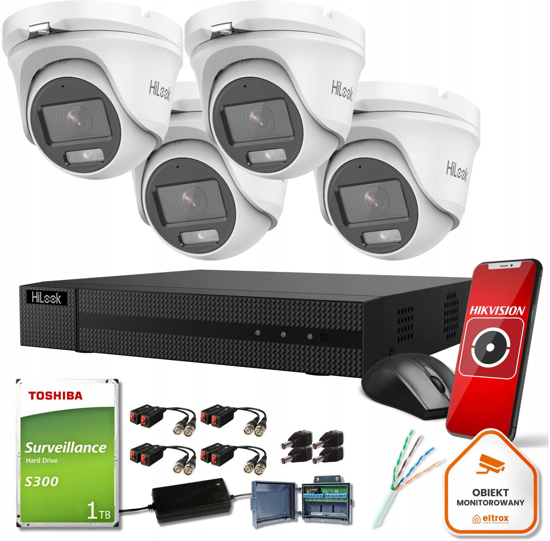 Zestaw monitoringu Hilook z 4 kamerami 5w1 5MPx do łatwego montażu