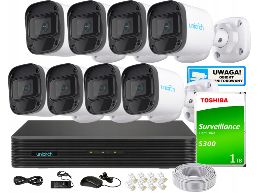 ZESTAW DO MONITORINGU ZEWNĘTRZNEGO 8 KAMER IP 4MPX UNIARCH