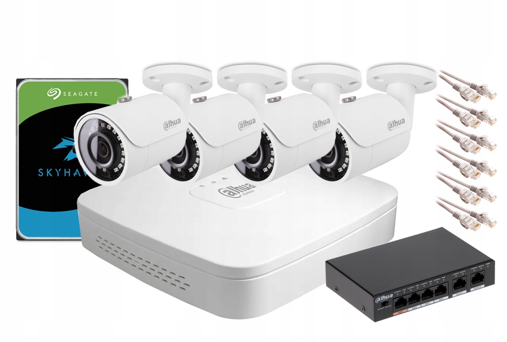 ZESTAW MONITORINGU IP DAHUA REJESTRATOR 4CH + DYSK TWARDY 1TB + 4 KAMERY TUBOWE 4MPx