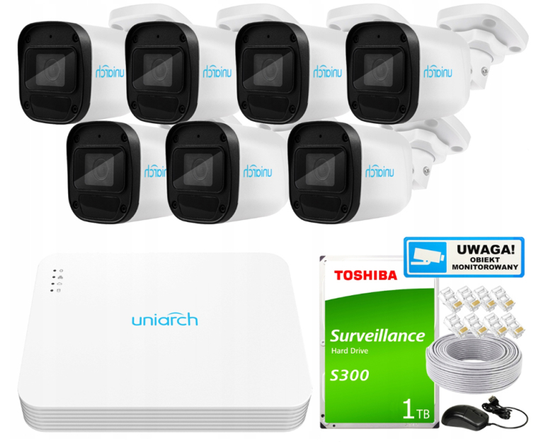 ZESTAW DO MONITORINGU ZEWNĘTRZNEGO 7 KAMER IP 2MPX UNIARCH