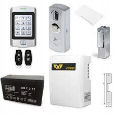 Zestaw kontroli dostępu z szyfratorem. Zestaw jest gotowy do podłączenia. W przypadku zaniku napięcia w sieci zasilacz buforowy z akumulatorem gwarantuje prawidłową nieprzerwaną pracę systemu.